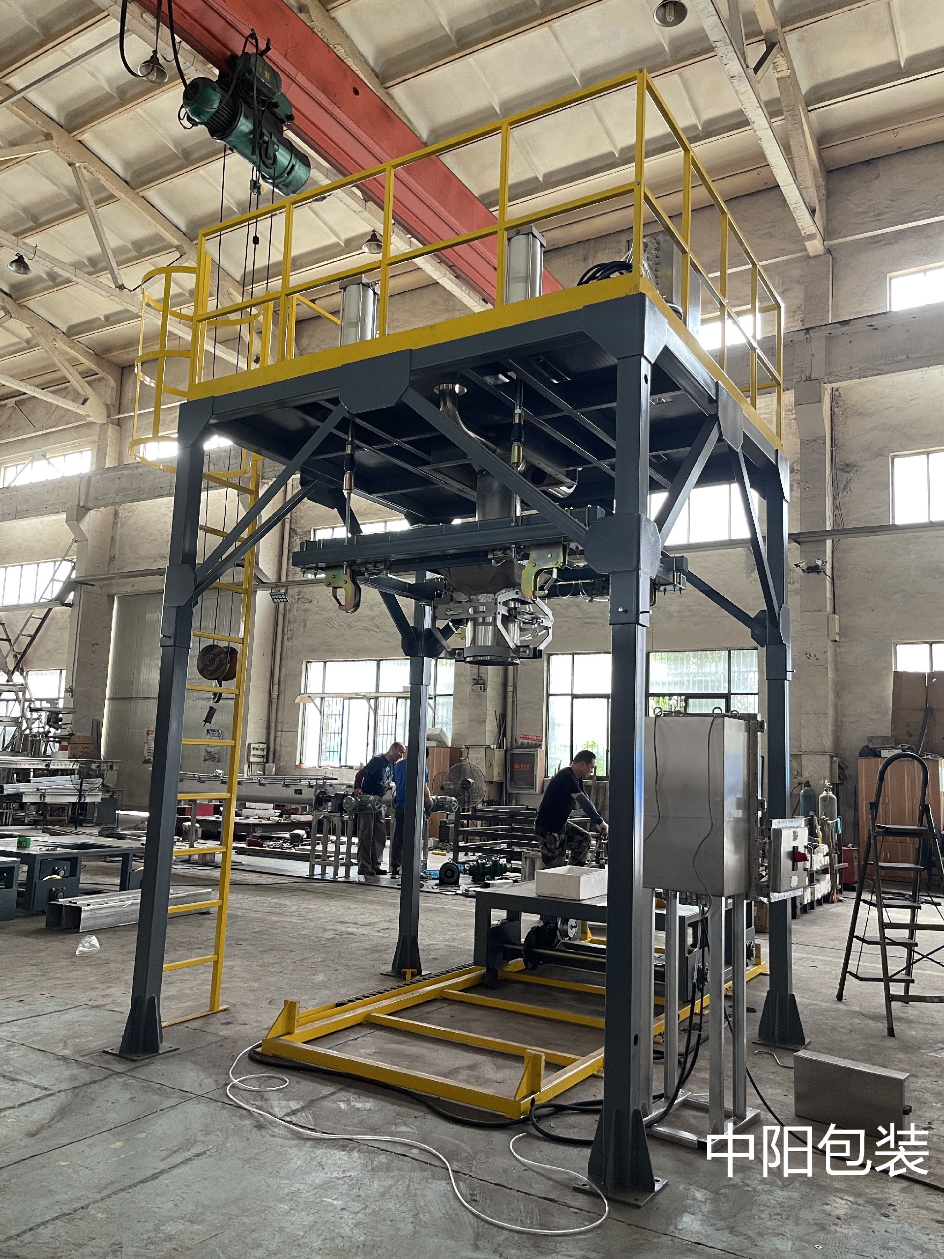 操作人員首先將噸袋打開并放置在包裝機(jī)的導(dǎo)袋裝置上。這一步驟確保了袋子正確無誤地進(jìn)入機(jī)器的工作區(qū)域。