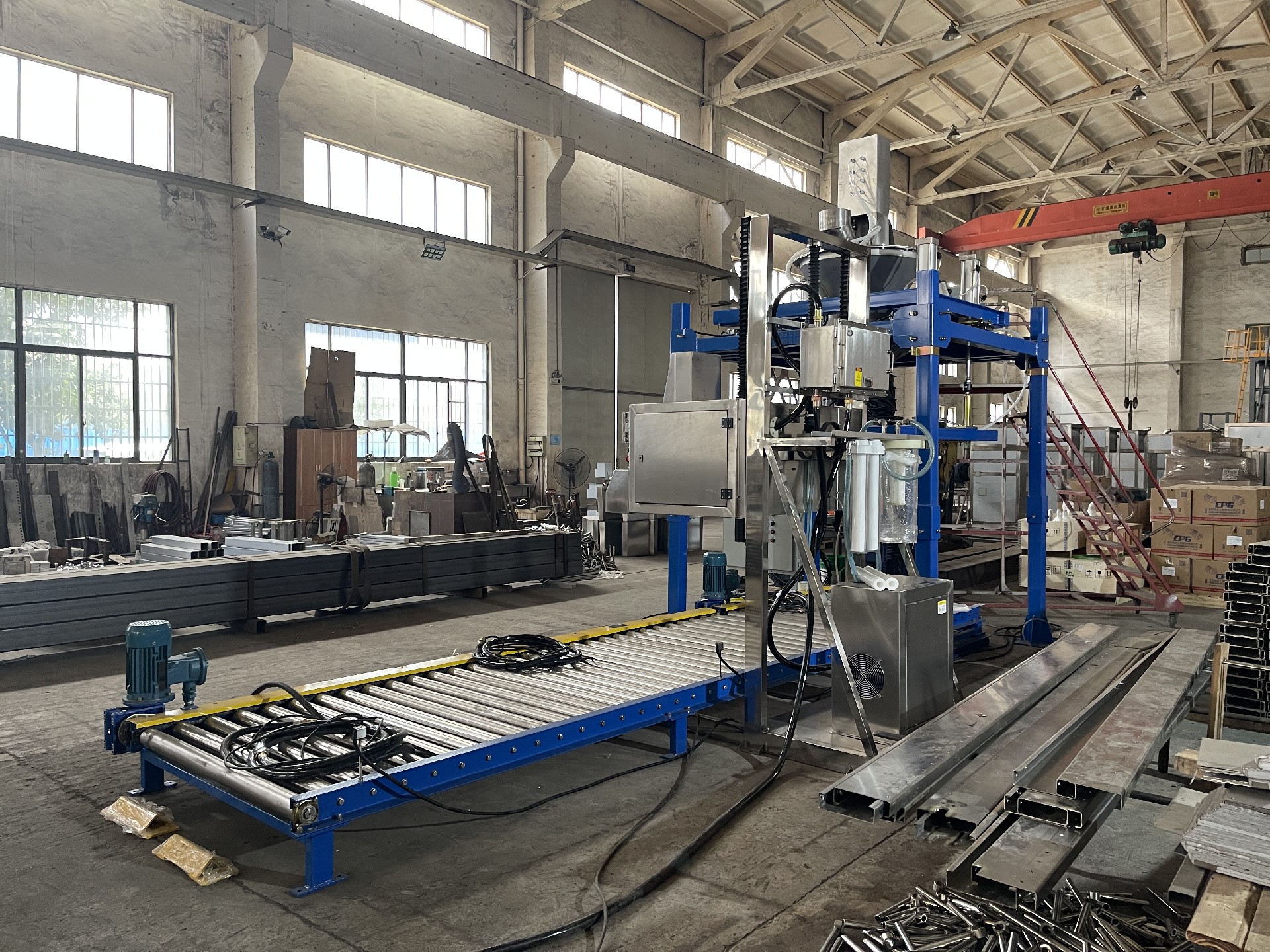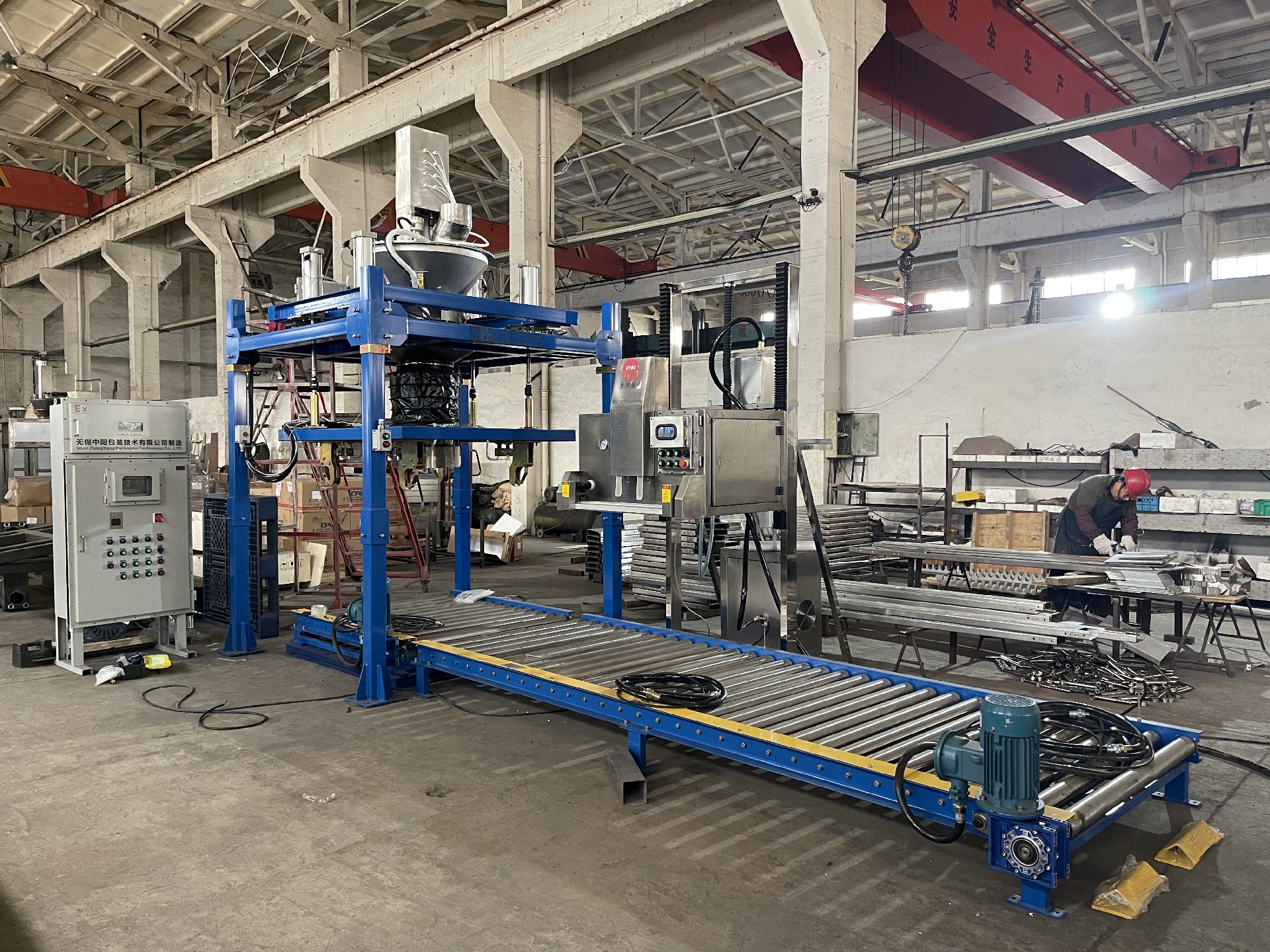 高精度計量:采用雙級給料系統(tǒng)(螺旋預(yù)填充+重力自流),稱重精度達(dá)±0.2%(1噸包裝誤差≤2kg)